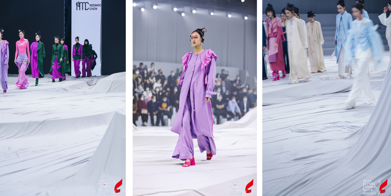 秀场共分为“雪野一梦”、“永远的科莫”、“莫利纳尔”、“黑巴克”、“执扇”、“心之水滴”、“空蒙”等系列。设计灵感来源于生命色彩能量,用色彩诠释生命力量。这季服装使用不同色彩设计出几个系列,每个颜色都代表了不同的场合 、心理以及疫情后的自我突破,环境生活节奏的改变。