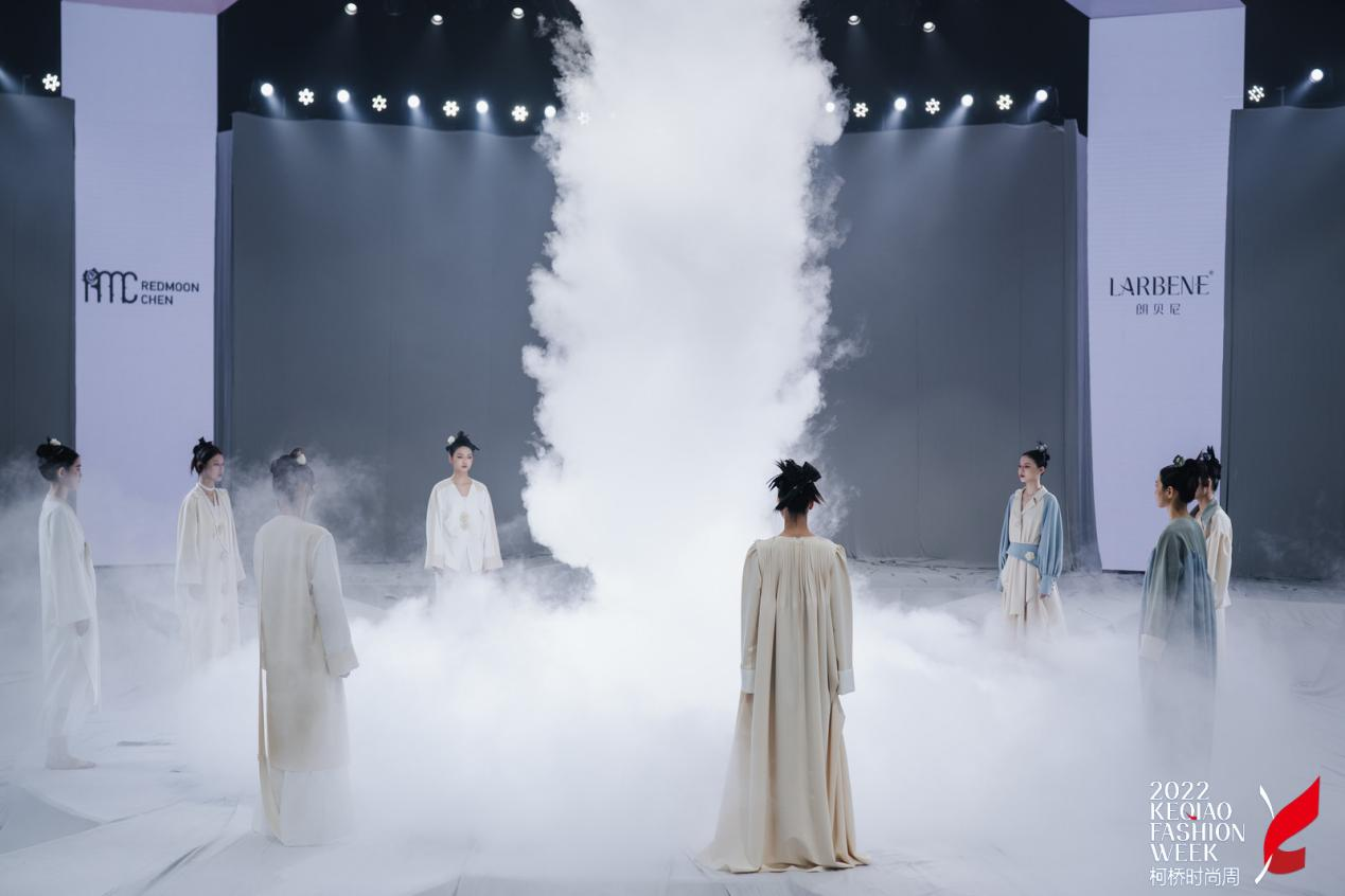 纯洁无暇的秀场、空灵幽雅的音效、耳目一新的光影调,配合每一位模特极具张力的服饰呈现,最后漫天飞下的雾气,把舞台和观众席融为一体。朗贝尼“观·自在”时装秀给所有观众献上了一场极具表现力而又美轮美奂的感官盛宴!